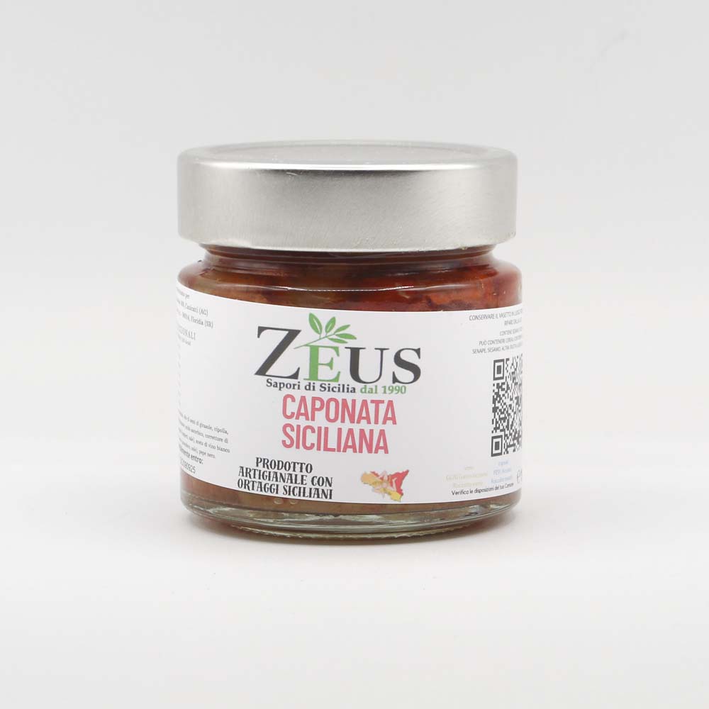 - Autenticità Siciliana: Prodotta artigianalmente in Sicilia, la nostra Caponata è realizzata con una selezione di ortaggi locali (melanzane, peperoni, sedano, cipolla, carote) che ne garantiscono la freschezza e la tracciabilità .
